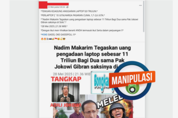 Di media sosial beredar kabar yang menyatakan Nadiem telah membagi duit pengadaan laptop Rp 11 triliun dengan Jokowi. Simak faktanya.